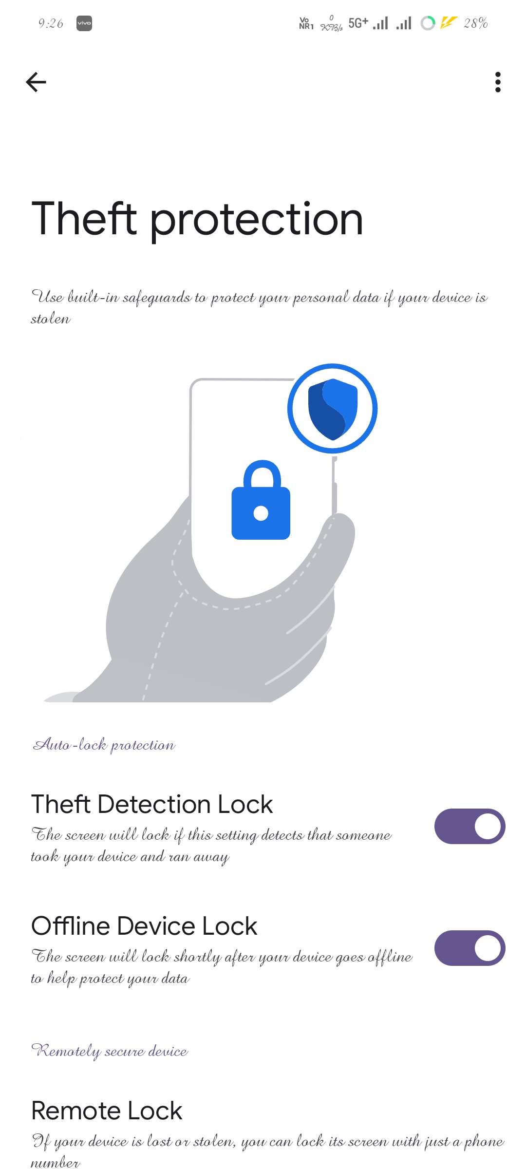 Theft Detection Lock: Automatically locks the screen if the phone detects unusual movement, such as being snatched and moved rapidly.