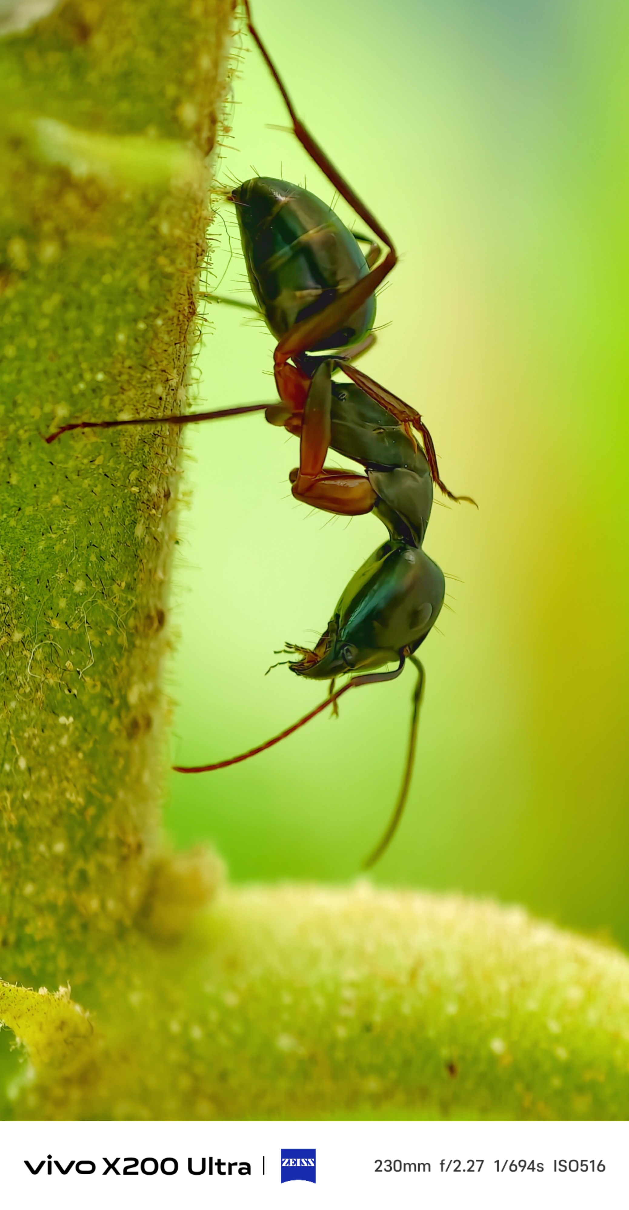 Captured this carpenter ant in stunning details with the vivo X200 Ultra at 230mm and trust me, even the tiny hair strands on its body and the plant stem are crystal clear! 😍