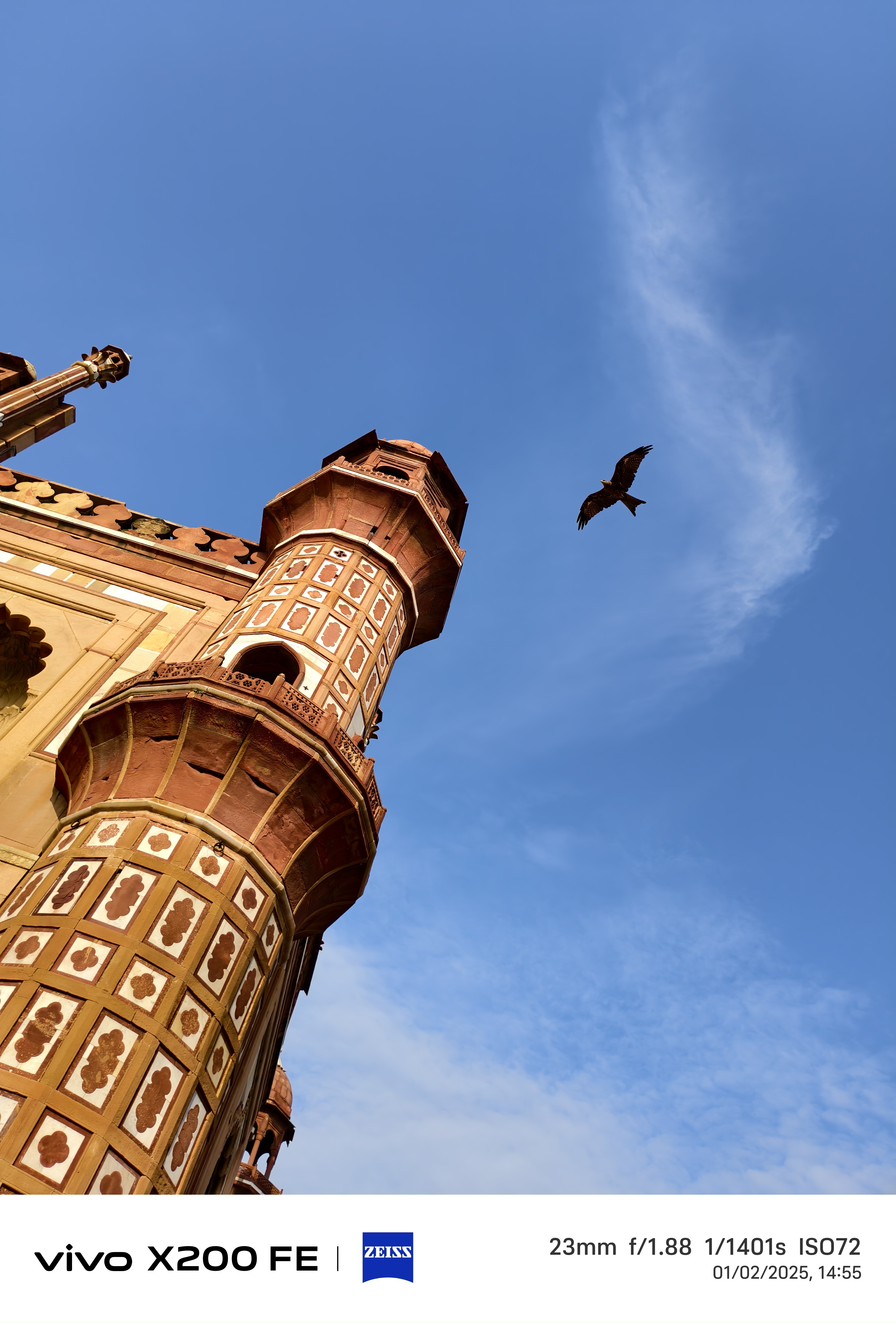 Captured the timeless elegance of Safdarjung Tomb using manual settings on the Vivo X200 FE with ZEISS optics. Every detail, from the intricate architecture to the soaring bird against a vivid blue sky, came alive exactly as I envisioned it.