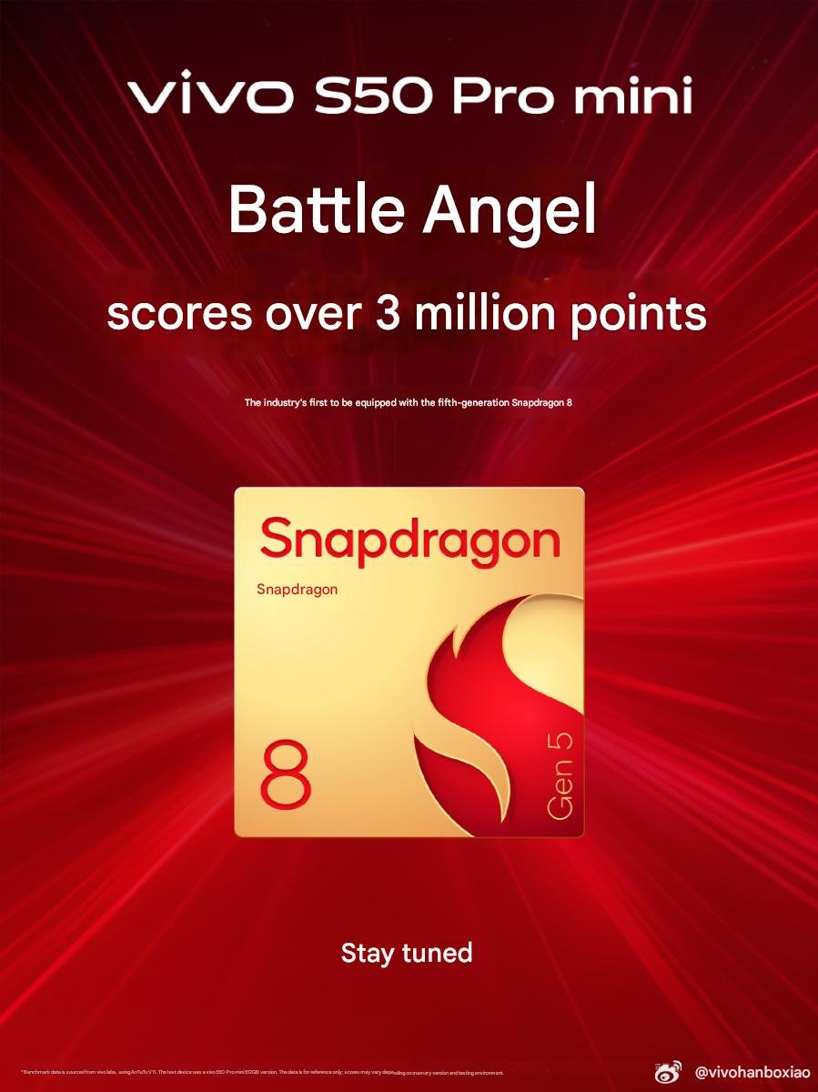 The confirmation came straight from Vivo’s Han Bo Xiao on Weibo, who revealed that the S50 Pro mini will run Qualcomm’s brand-new Snapdragon 8 Gen 5 chipset. That alone already puts it in flagship territory. The phone will also use LPDDR5X RAM and UFS 4.1 storage — the same combo you’ll find in the company’s X300 series and the X200 Ultra. In other words, the “mini” label is more about size than capability.