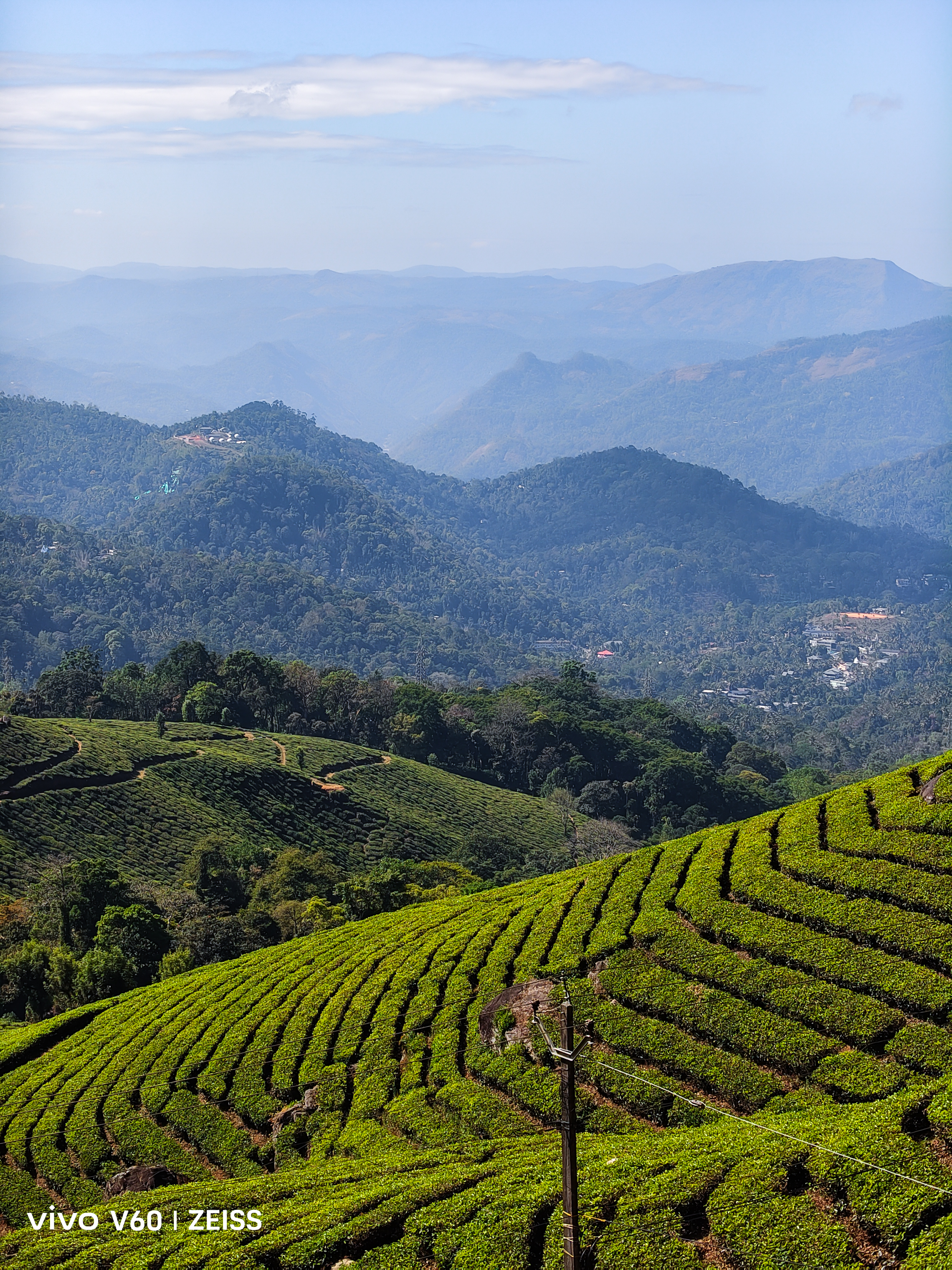 Found myself lost in the endless tea estates of Munnar today. The clarity of the ZEISS lens on the vivo V60 is next level—just look at the detail in those tea leaves and the way it handles the high-altitude sunlight. No filters needed when the landscape looks like this! 🌿✨